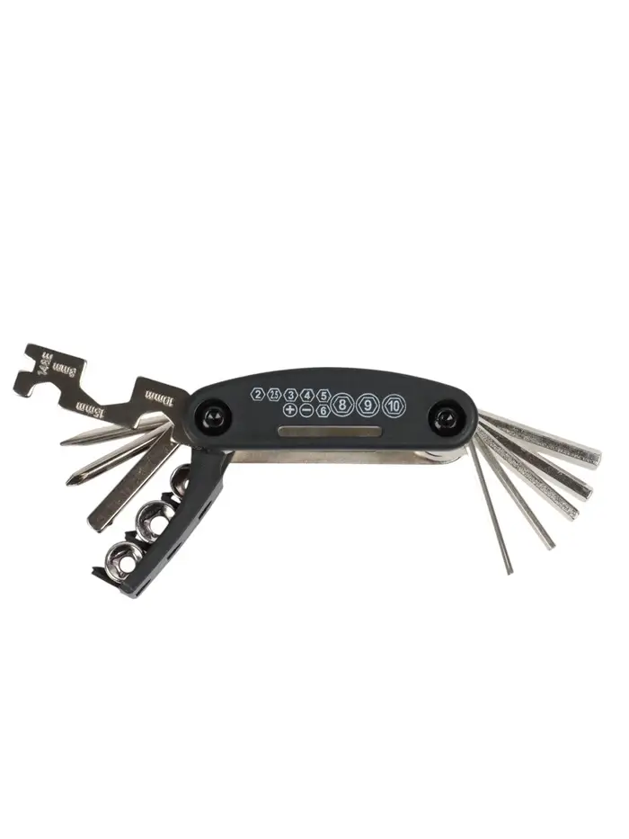Многофункциональный набор содержит в себе несколько инструментов для ремонта велосипеда. Они особенно пригодятся в поездках на длинные дистанции.
