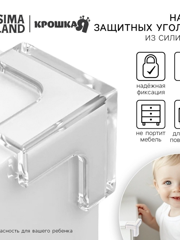 Защитные накладки на углы, силиконовые, набор 8 шт, Крошка Я