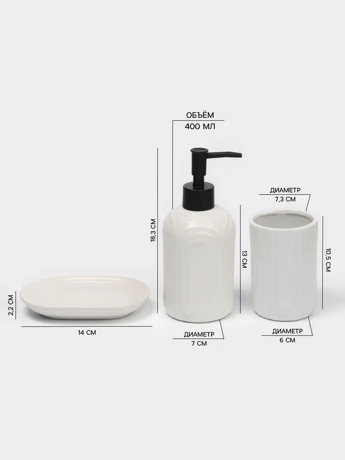 Набор для ванной SAVANNA «Волна», 3 предмета, дозатор для мыла, стакан, мыльница