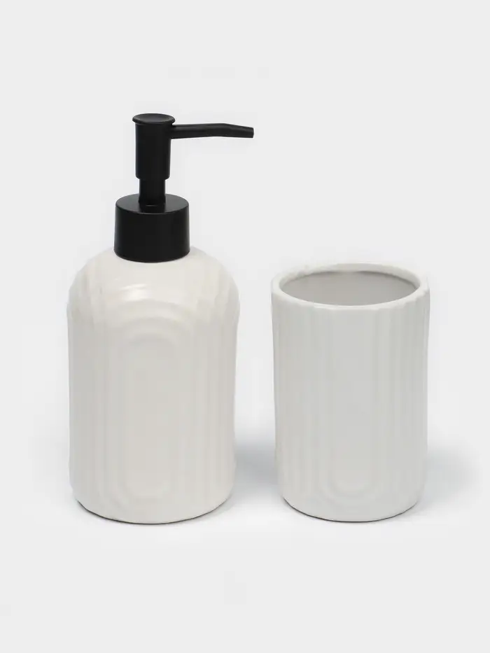 Аксессуары для ванной SAVANNA Monro, 4 предмета, мыльница, дозатор для мыла 450 мл, стакан, баночка, белые