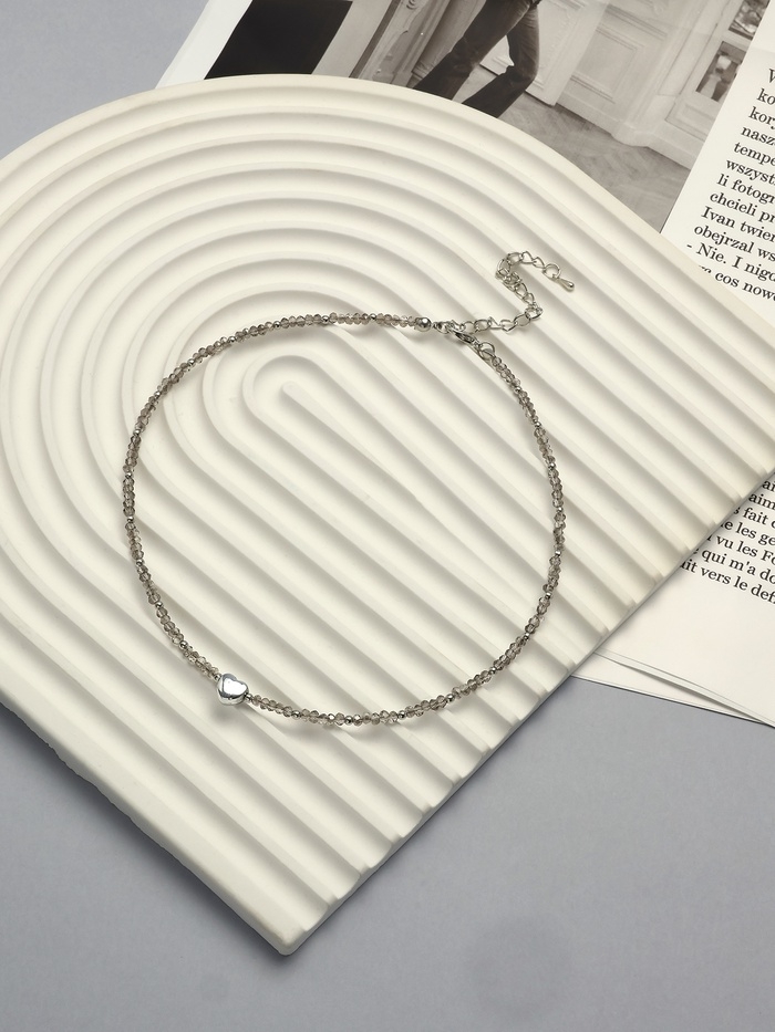 Чокер «Сердце» бусина №4, цвет серый в серебре, 35 см