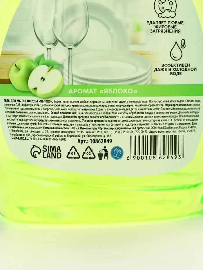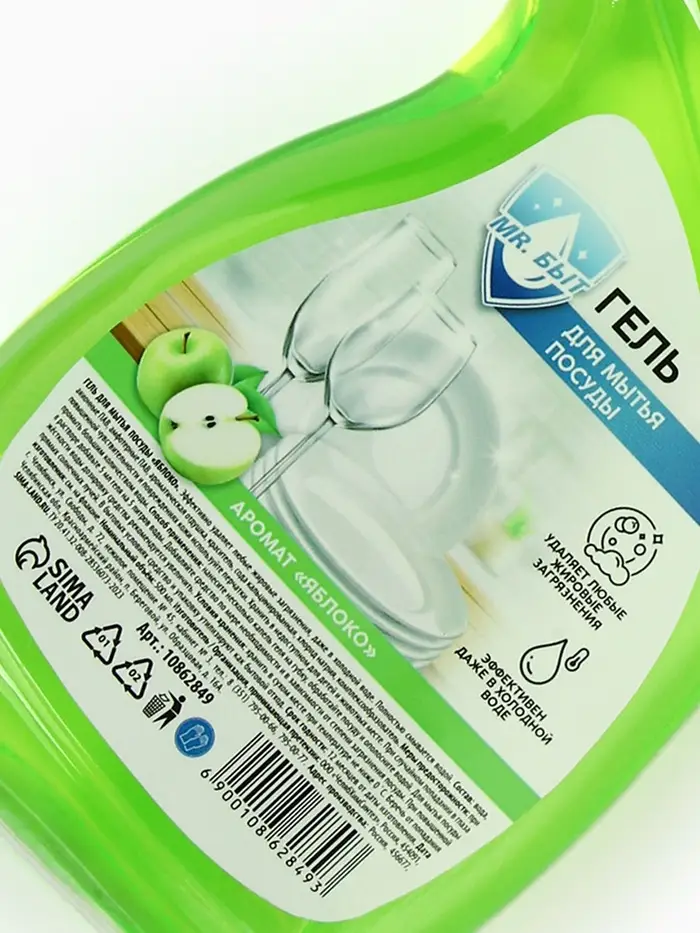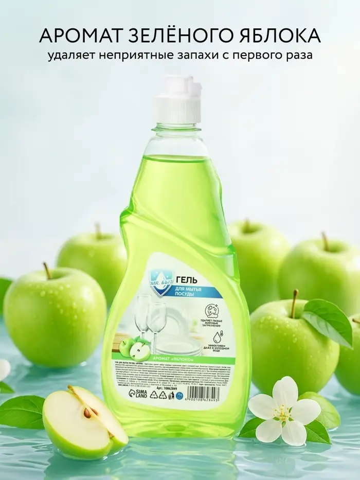 Гель для мытья посуды, 500 мл, аромат яблоко, Mr.Быт