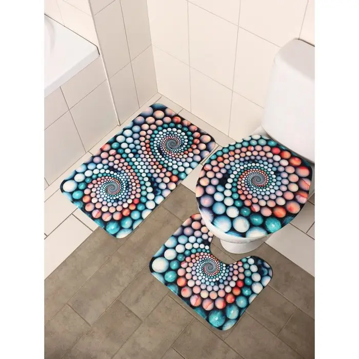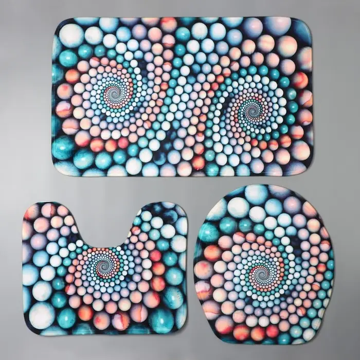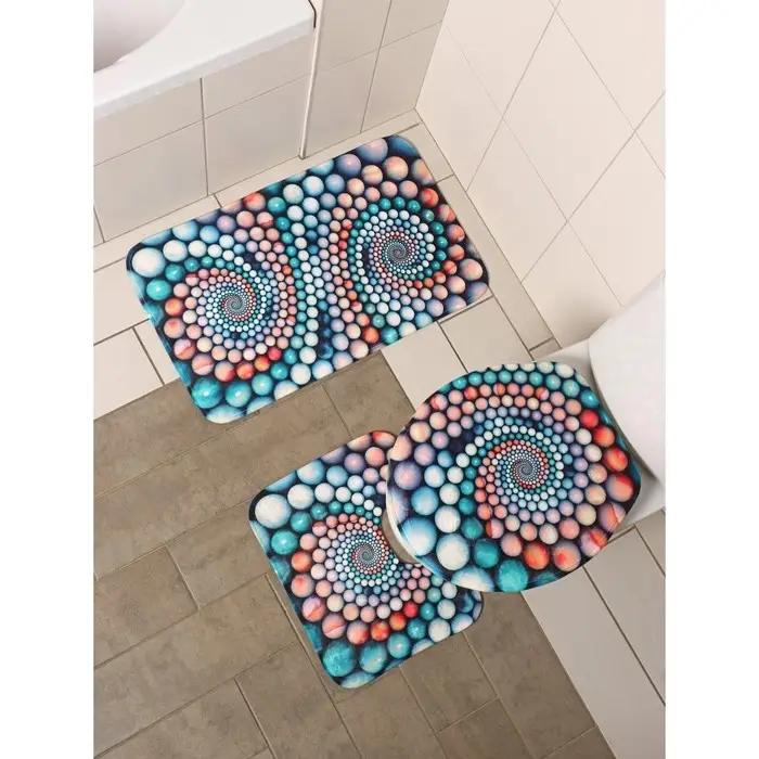 Коврик для ванной и туалета Доляна «Каменные завитки», 3 шт., 35×39 см, 40×50 см, 45×75 см