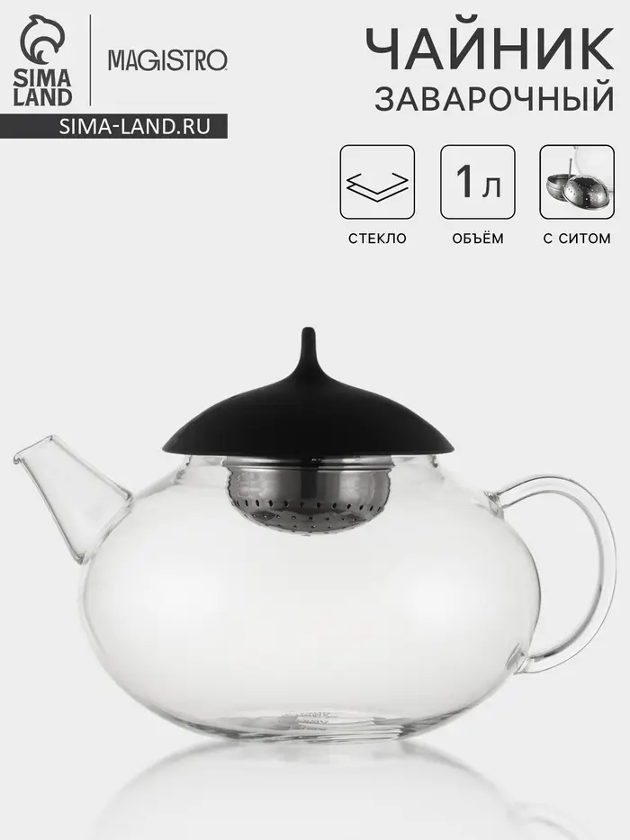 Чайник заварочный Magistro «Дроппер», 1 л, 22×14 см, с металлическим ситом, стекло, прозрачный