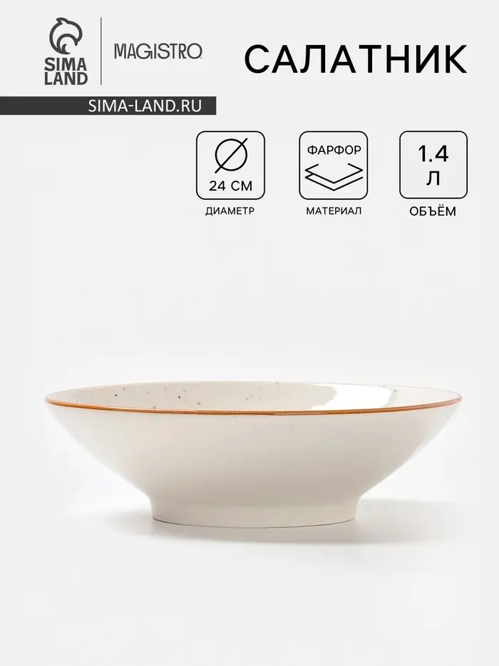 Салатник Magistro Queil, 1.4 л, d=24 см, фарфор, белый