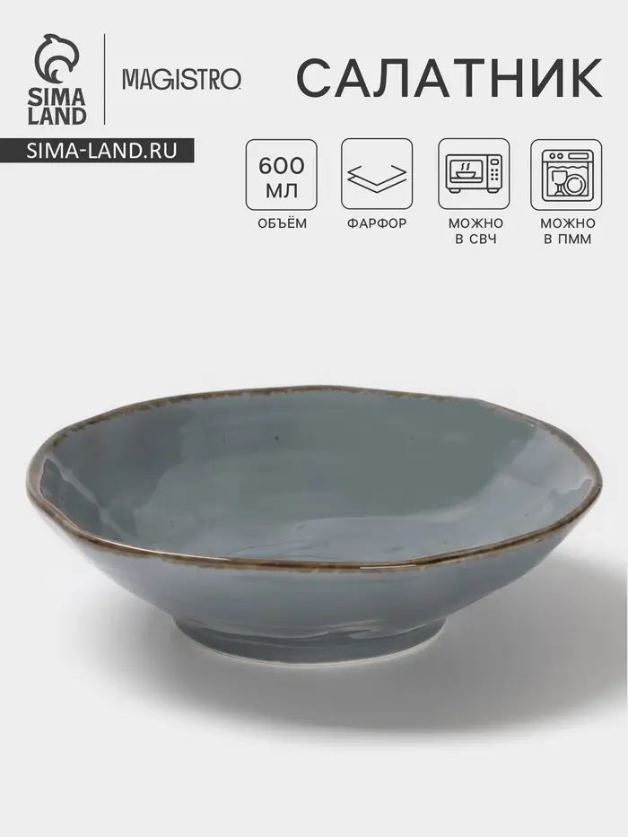 Салатник Magistro Alpine Frost, 600 мл, 18.8×5.1, фарфор, голубовато-серый