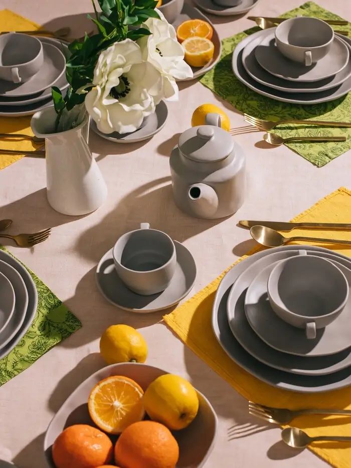 - Однотонный дизайн делает этот набор универсальным и легко сочетаемым с другими предметами сервировки.