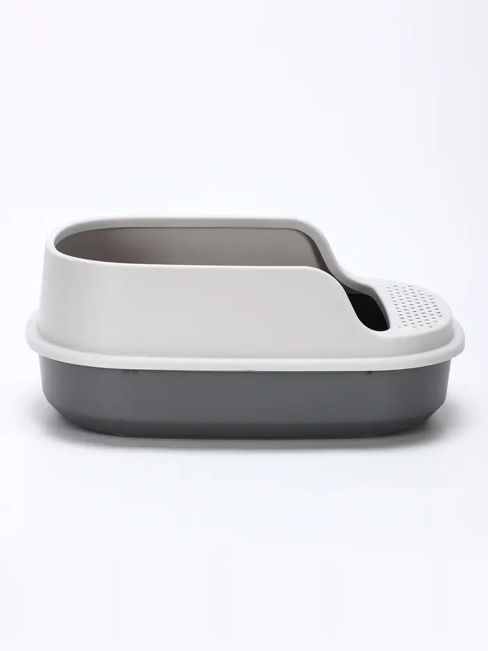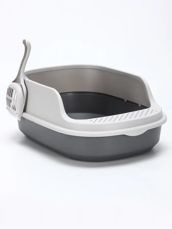 Лоток, в котором наполнитель остаётся внутри, а лапы — чистыми: высокие борта и удобный совок решают две главные проблемы владельцев кошек. Кошачий лоток размером 48×35,5 см выполнен в сером оттенке смоки с покрытием софт-тач — приятным на ощупь и устойчивым к царапинам. В комплекте — практичный совок, который легко зацепить за край.
