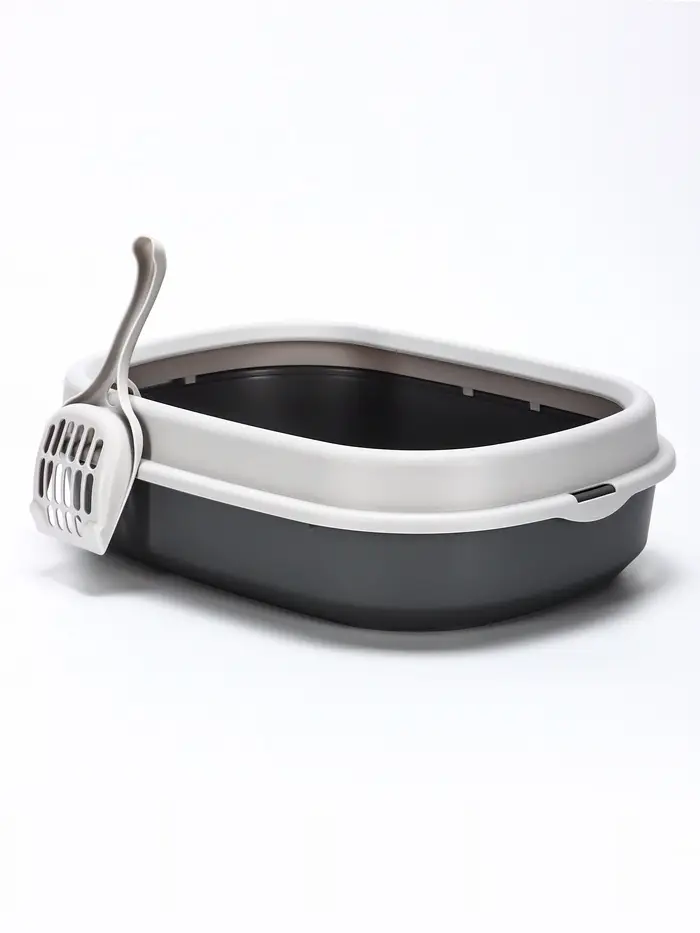 Лоток для кошек «Фур-Мур», 48×35.5 см, с бортом и совком, покрытие софт-тач, смоки