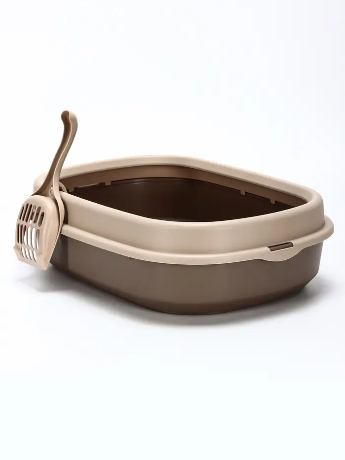Лоток для кошек «Фур-Мур», 48×35.5 см, с бортом и совком, покрытие софт-тач, цвет капучино