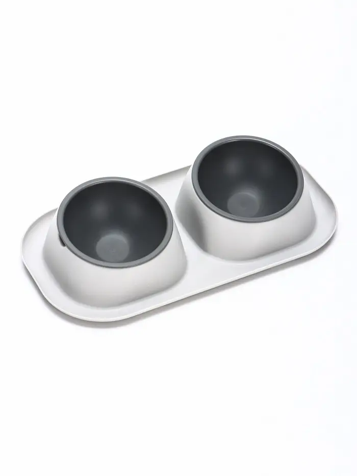 Миски с лотком «Феликс», 300 мл, 41×30×6 см, пластик, серый лоток, белые миски