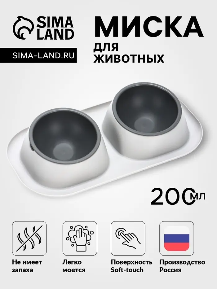 Миска для животных «Дубль Мини», 200 мл, покрытие софт-тач, цвет смоки