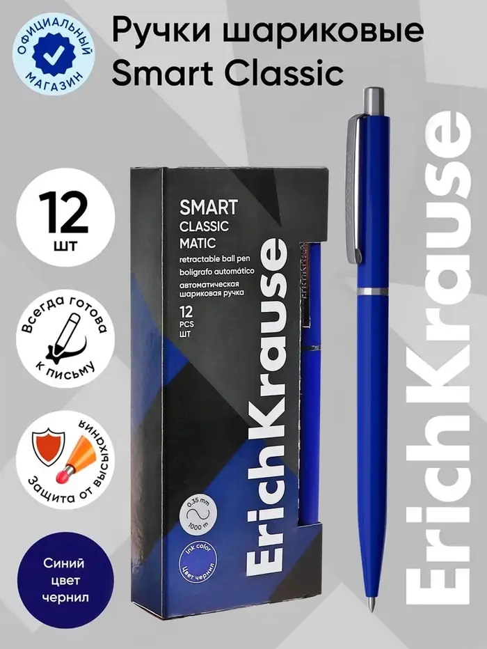 Автоматическая шариковая ручка ErichKrause Smart — это практичный инструмент для делового общения. Её лаконичный дизайн создан не только для письма, но и для того, чтобы донести имя вашей компании или проекта до клиентов и партнёров.