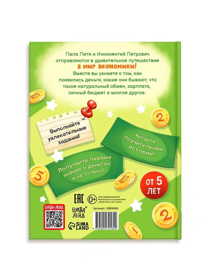 Эта книга напоминает путеводитель в мир финансов, где каждая страница становится шагом к новым знаниям. Это похоже на «игру в экономику», где ребёнок учится понимать, как работают деньги, что такое бюджет и как принимать осознанные решения. Благодаря продуманной структуре процесс обучения становится естественным и приятным, а результат вызывает чувство уверенности и любопытства.