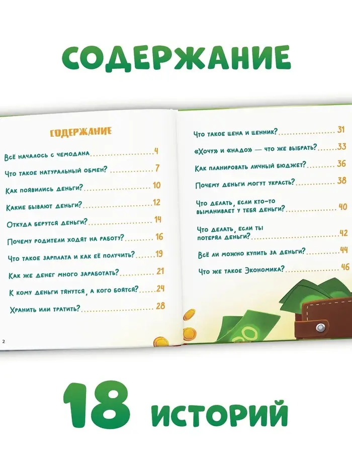 - 48 страниц с увлекательными историями о деньгах, их происхождении, значении и использовании.
