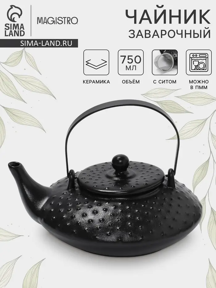 Чайник заварочный Magistro Black Swan, с ситом, 750 мл, керамика, чёрный