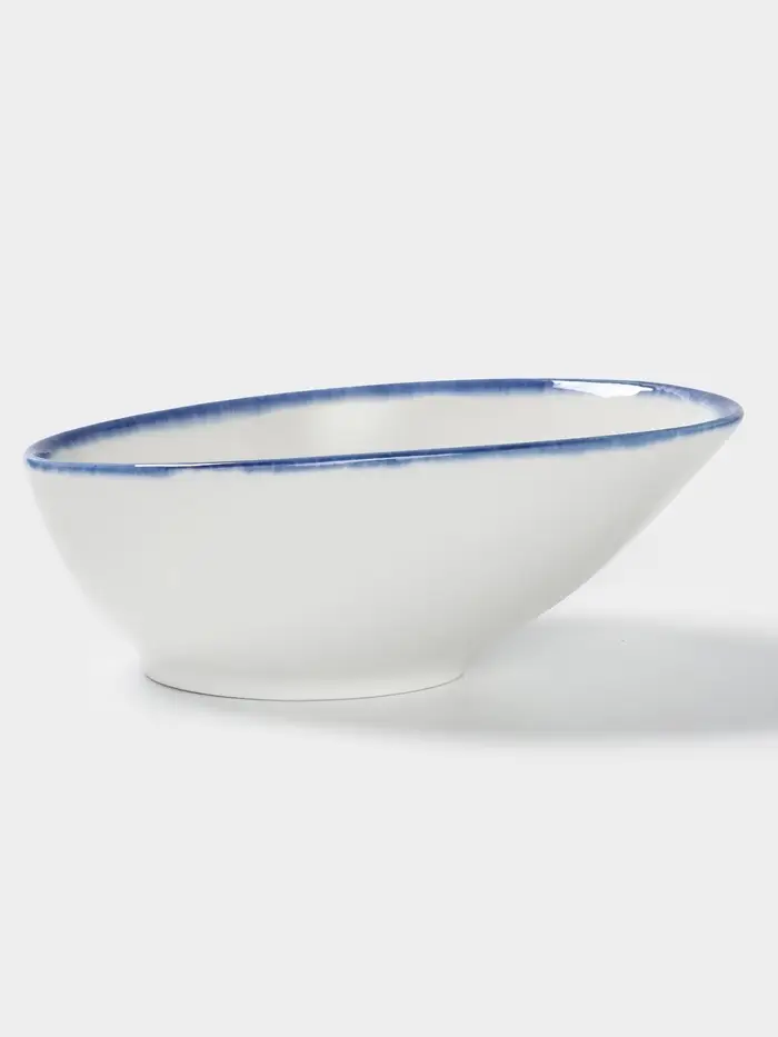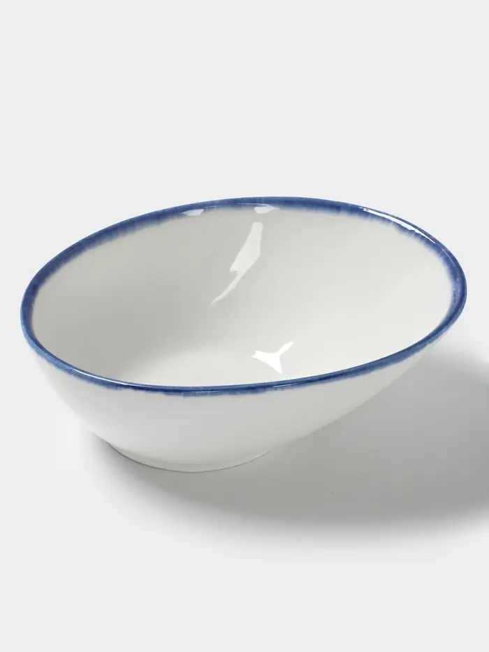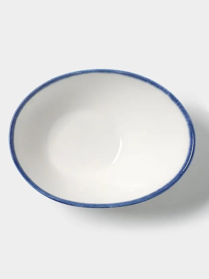 Элегантная фарфоровая салатница в белом цвете с нежными голубой полосой — универсальный акцент для сервировки. Гладкий глянец фарфора приятен на ощупь, а овальная форма (18,1×14,2 см) удобна для подачи салатов, закусок или горячих блюд. Объём 550 мл идеален для семейных обедов или ужинов с гостями.