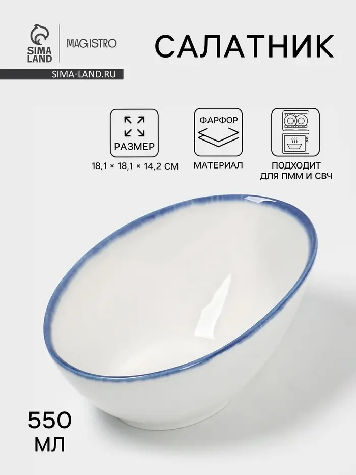 Салатник Magistro Blue Lagoon, 550 мл, 18.1×14.2 см, фарфор, белый