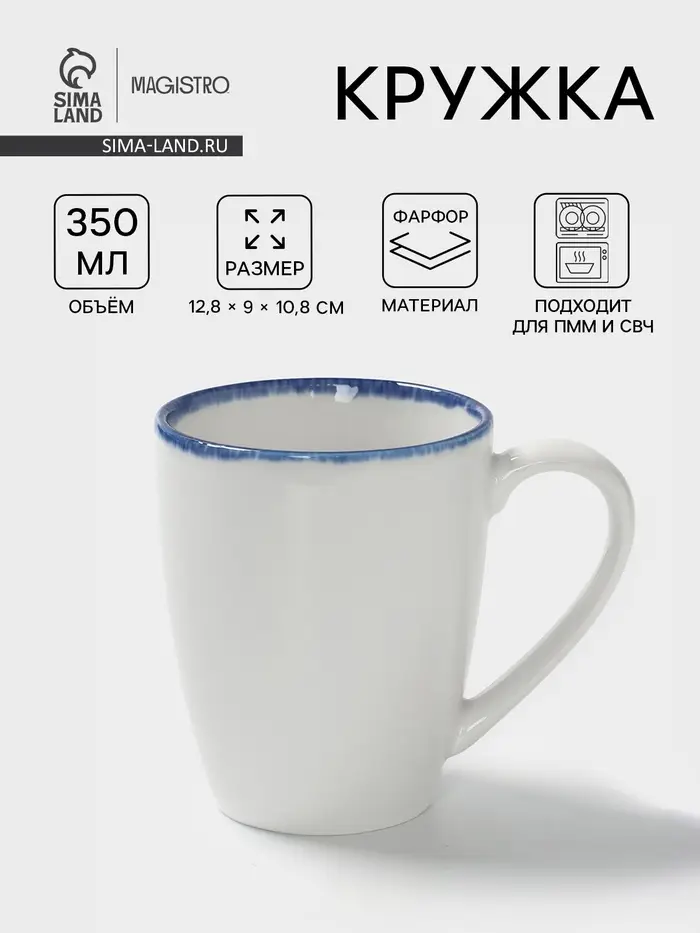 Кружка Magistro Blue Lagoon, 350 мл, фарфор, белая