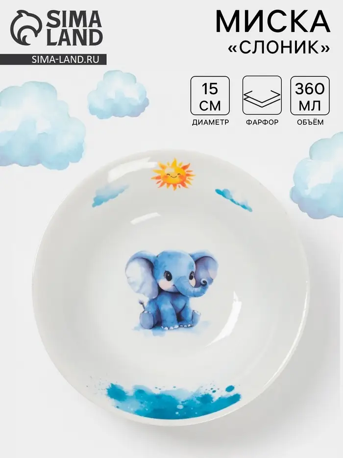 Эта миска станет надёжным помощником на кухне. Благодаря компактному размеру и вместительности она легко справляется с порциями супа, каши или салата. Рисунок со слоником привносит нотку радости, особенно для маленьких членов семьи, но при этом остаётся достаточно универсальным для взрослых.