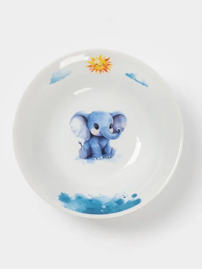 - Рисунок "слоник" придаёт изделию игривый и уютный вид, подходящий для детской посуды.