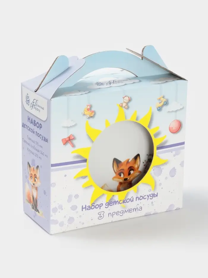 Набор детской посуды Дулевский фарфор «Лисичка», 3 предмета: тарелка 175 мл, миска 360 мл, кружка 210 мл, белый