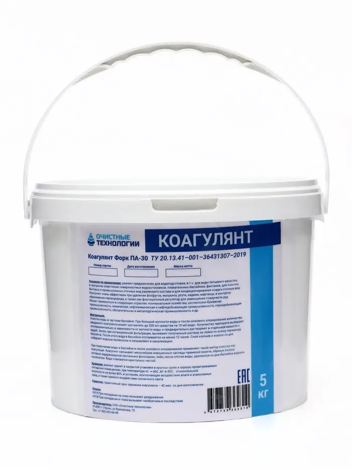 Коагулянт для бассейна «Очистные технологии», порошок, 5 кг — промышленная мощность для кристально чистой воды