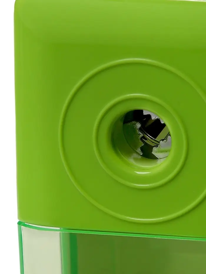 - Точилка имеет одно отверстие и вместительный контейнер для сбора стружки.