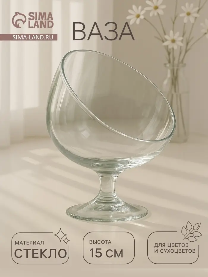 Воплотите в жизнь самые смелые дизайнерские идеи по украшению дома! Ваза из прозрачного стекла — основа для вашего творчества. Насыпьте в неё цветной песок, камушки, ракушки или другой декор. Создавайте восхитительные интерьерные композиции из цветов и зелени.