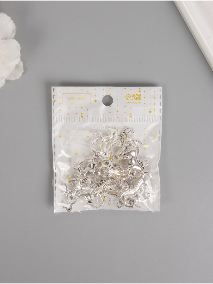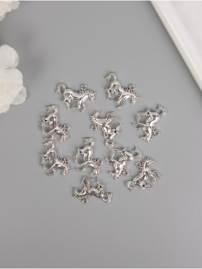 Декор для творчества металл "Скачущий конь" серебро набор 10 шт 2,2х2,9х0,4 см