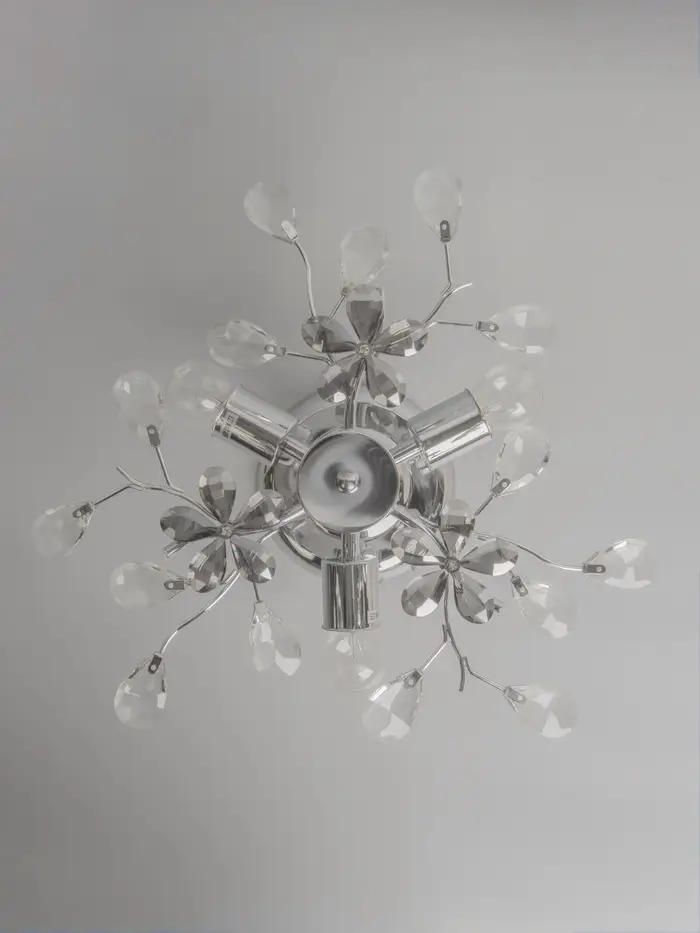 Свет, как отражение элегантности. Подвесной светильник с тремя лампами и декоративными элементами в виде цветов, хром, E27 — тонкий акцент для спальни, гостиной или кухни до 6 м². Это не просто источник света, а деталь интерьера, которая добавляет изящество без излишней театральности.