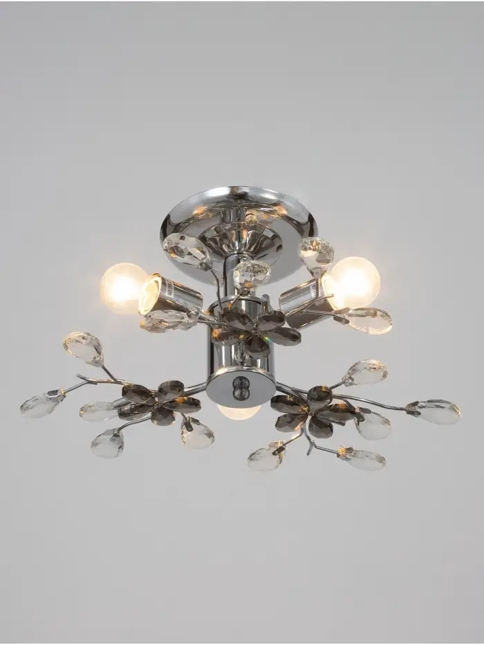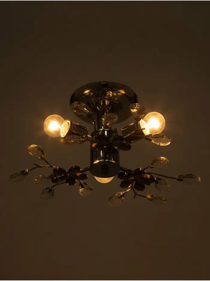 Где раскрывается полностью: В спальне с бежевыми стенами, в классической гостиной или на кухне с хрустальными подвесками. Декоративные «цветы» не кричат о себе, но при включённом свете создают тонкие тени и объём, добавляя глубину потолку. Управление — через настенный выключатель, без пульта. Лампы приобретаются отдельно — это возможность выбрать тёплый свет для уюта или нейтральный для функциональности. Такой светильник не требует идеального ремонта — он работает в реальной квартире, где важны и красота, и практичность.