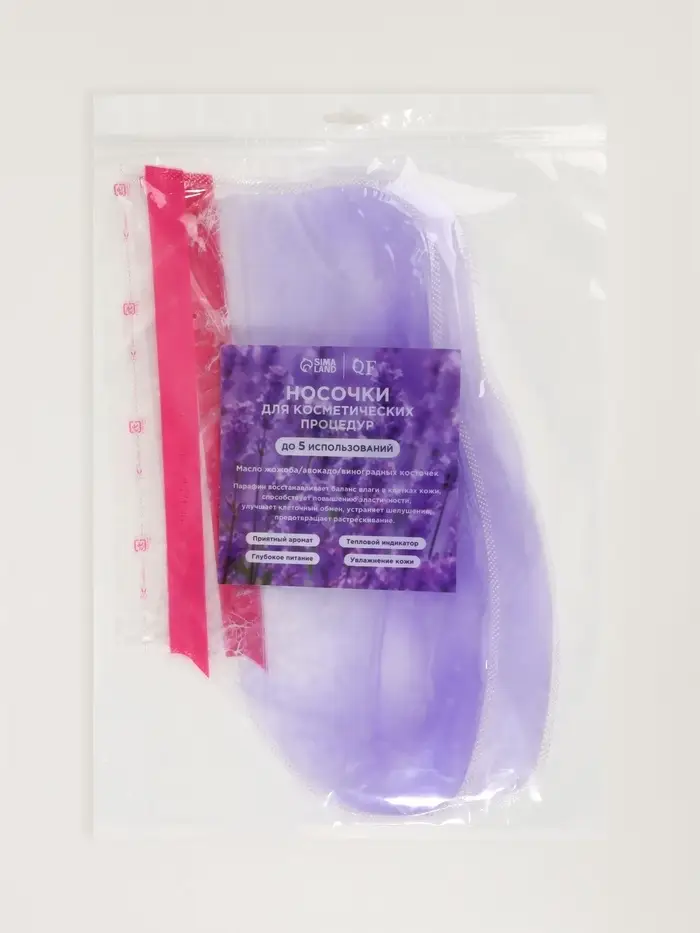 Носочки для парафинотерапии от бренда QF — практичный аксессуар для домашнего ухода за кожей рук и ног. Используются с парафином, чтобы равномерно распределить тепло и активные компоненты масок. Фиолетовый цвет добавляет эстетики, а прозрачные вставки позволяют контролировать процесс состава.