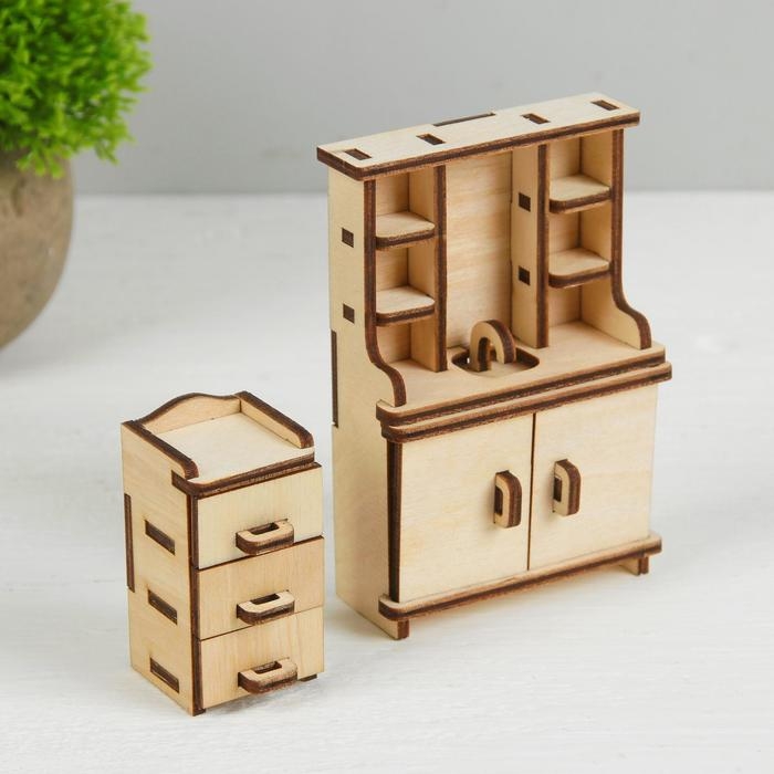 Создайте миниатюру настоящей комнаты из деревянных деталей. Предметы мебели сделаны из экологически натурального и безопасного материала. Изделия выглядят очень реалистично и идеально подойдут как для игр малыша, так и в качестве декора для детской.