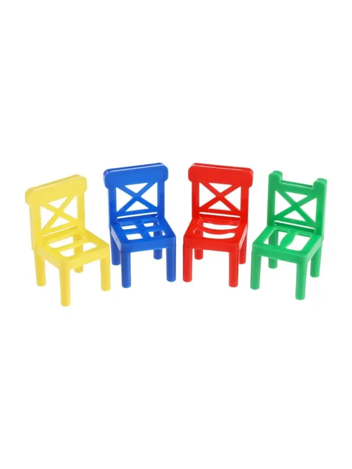 - Второй и последующие игроки ставят свои стульчики сверху таким образом, чтобы сохранить баланс и не уронить всю конструкцию.