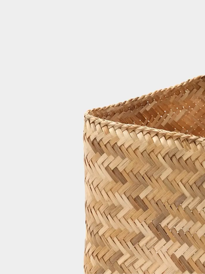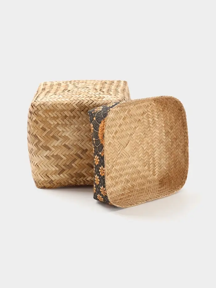 - Натуральные материалы: Каркас из гибкого бамбука и текстильная подкладка создают прочную и легкую конструкцию. Такое сочетание обеспечивает корзине долговечность и приятные тактильные ощущения.