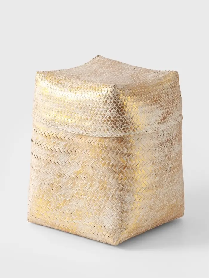 - Практичная крышка: Крышка скрывает содержимое от пыли и посторонних взглядов, поддерживая аккуратный вид в комнате. Это превращает корзину в элегантный элемент декора, который несет и полезную функцию.