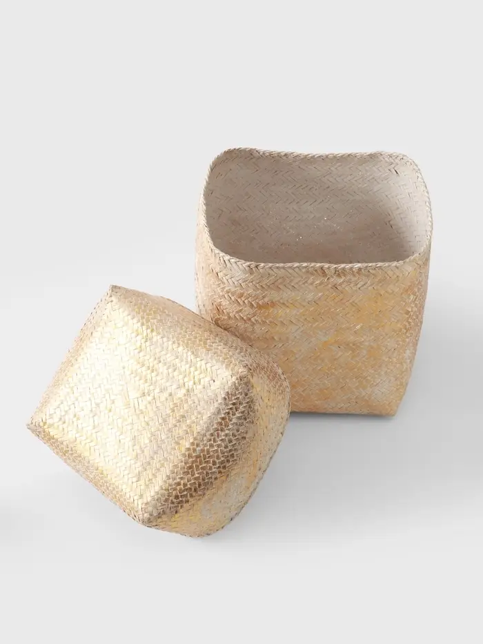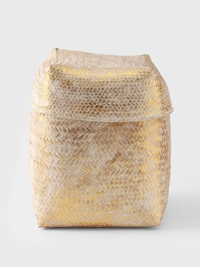 - Натуральный бамбук: Прочное и экологичное плетение придает корзине особую текстуру и долговечность. Материал «дышит», что важно для хранения текстиля или других домашних мелочей.