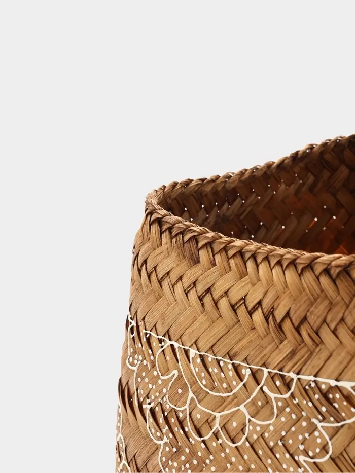 - Практичная крышка: В комплекте идёт плоская плетёная крышка. Она скрывает содержимое от пыли и взглядов, превращая корзину в элегантный кофейный столик или прикроватный пуф.