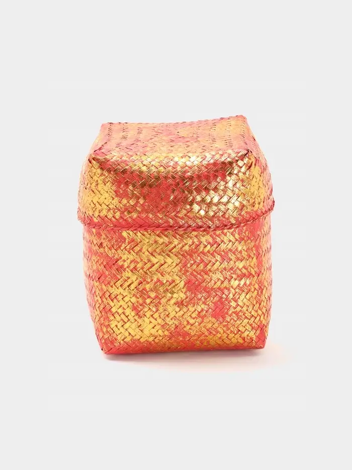 Создайте стильный порядок в каждой комнате! Плетёная корзинка с крышкой «Голден» — это практичный и элегантный аксессуар для хранения из натурального бамбука. Её лаконичный дизайн в нежном розовом цвете с золотистым акцентом ручки легко впишется в современный интерьер, делая организацию пространства простой и эстетичной.
