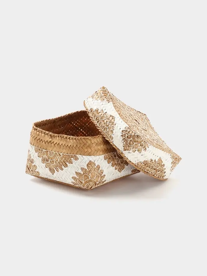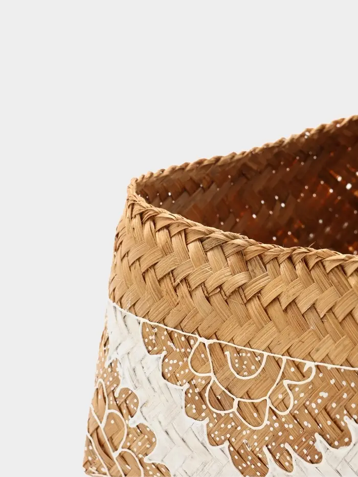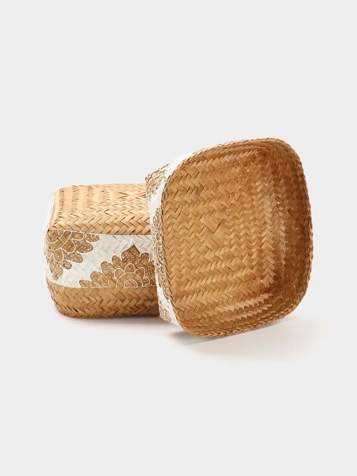 - Натуральный бамбук: Прочное и экологичное плетение придаёт изделию лёгкость, долговечность и тактильную теплоту. Каждая корзина имеет уникальный природный рисунок плетения, что добавляет интерьеру индивидуальности.