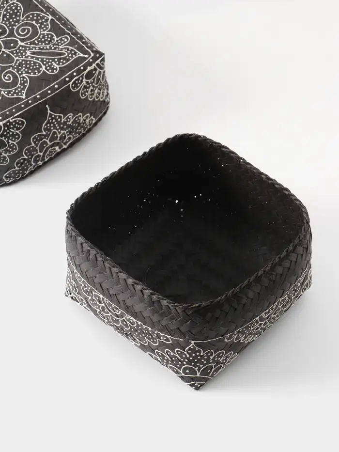Гармония в деталях: Тёмная бамбуковая корзина с крышкой вносит в обстановку текстурную глубину и ощущение ручной работы. Она не просто хранит, но и украшает, расставляя спокойные, тёплые акценты. Это выбор для тех, кто ищет простые и честные вещи с характером.