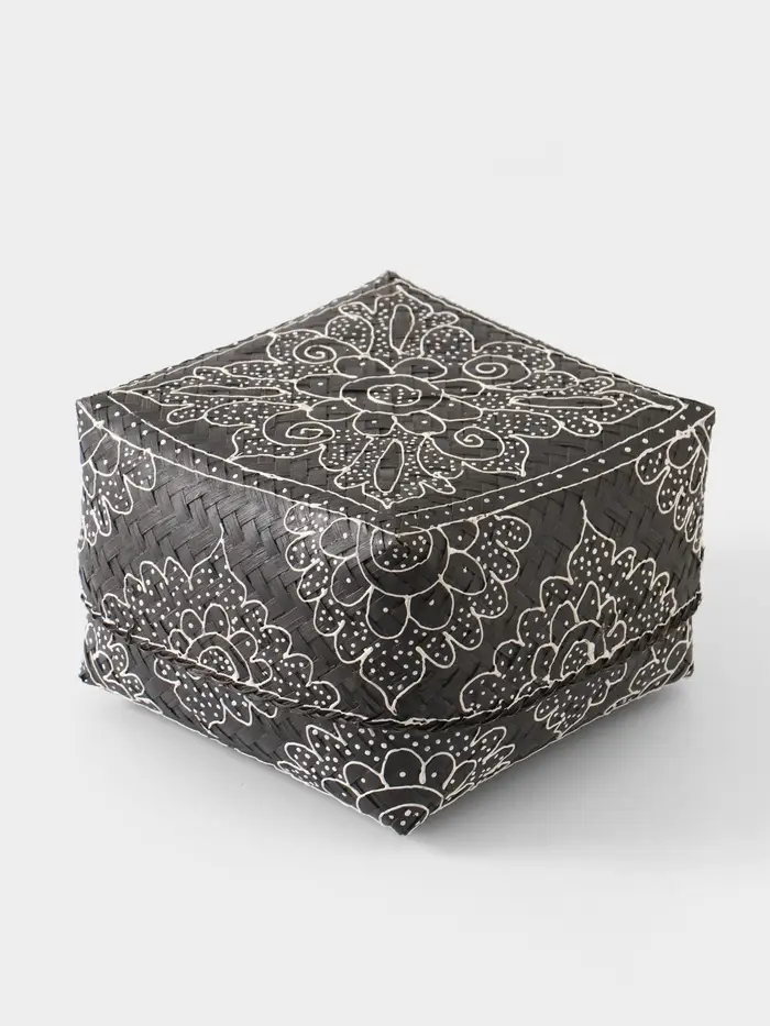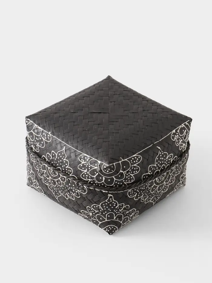 Порядок в стиле «ваби-саби». Квадратная корзина с крышкой из бамбука — это практичный акцент для интерьера, где ценят натуральность и лаконичный дизайн. Её тёмный оттенок и чёткая геометрия создают выразительный, но спокойный контраст в любом пространстве.