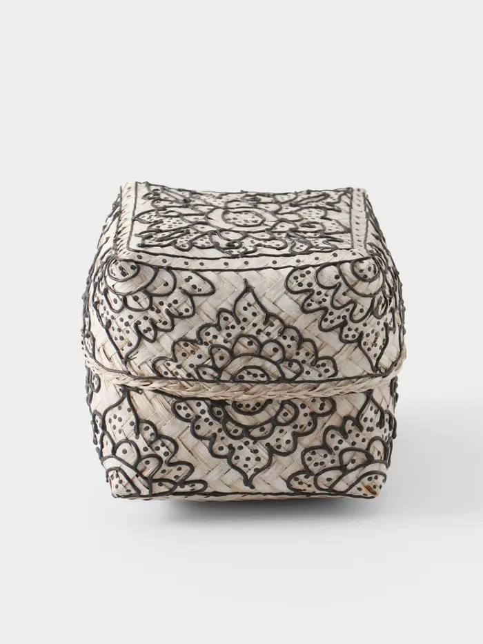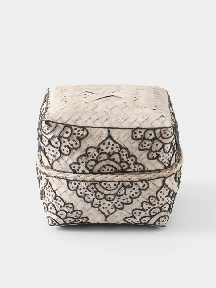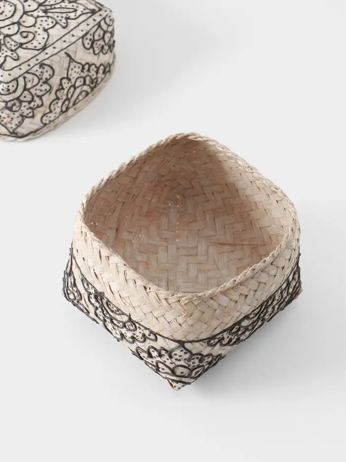 - Удобный квадратный формат: Чёткие геометрические линии и компактные размеры 12×12×10 см позволяют эргономично использовать пространство на полке, столе или в шкафу. Корзинка не занимает много места, но вмещает достаточно мелочей.