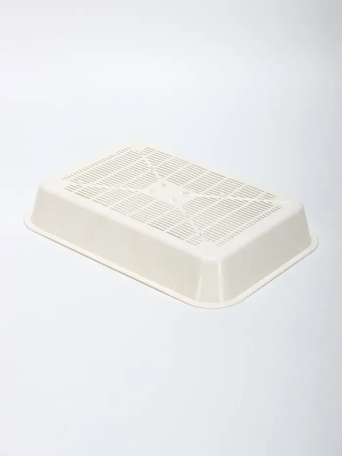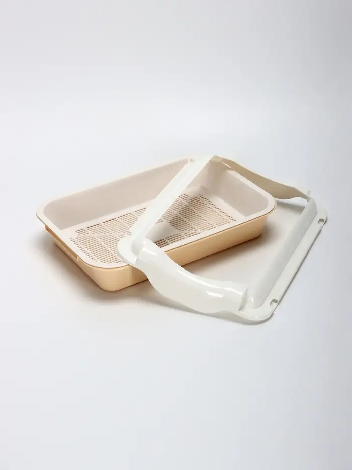 - Универсальный дизайн: Бежевый цвет лотка гармонирует с интерьером, а белые элементы (сетка и бортик) добавляют аккуратности. Лоток выглядит эстетично и не привлекает лишнего внимания.