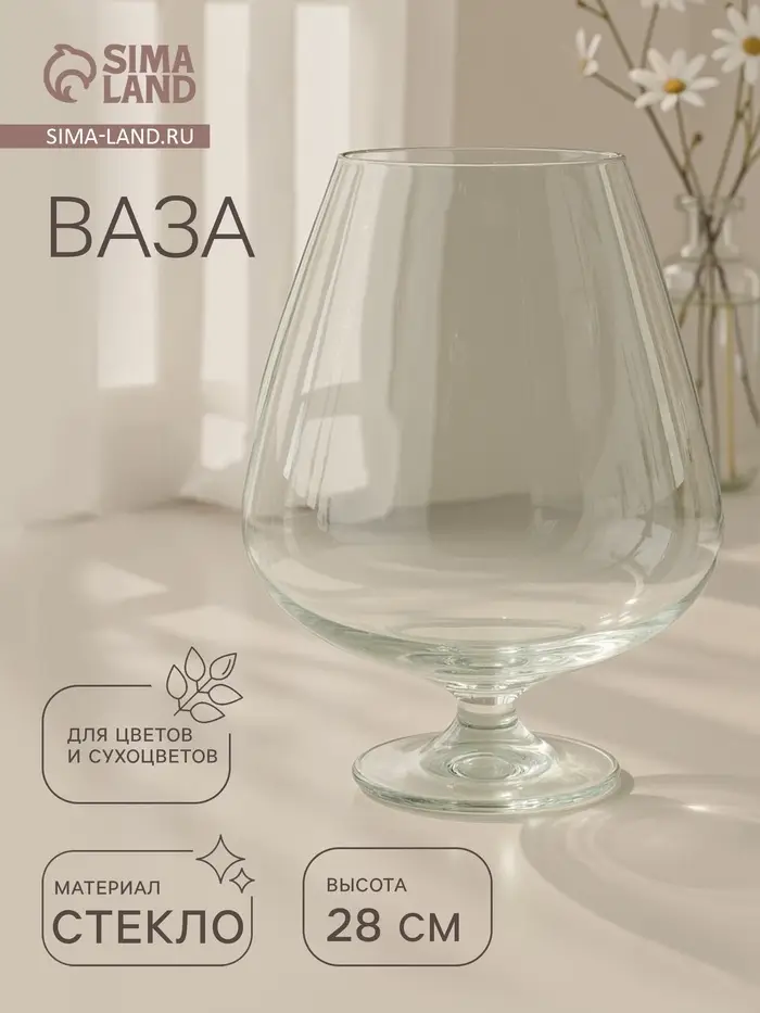 Ваза для цветов «Бренди» бокал на ножке, 5 л, d=13.5 см 28×20 см, стекло, прозрачная