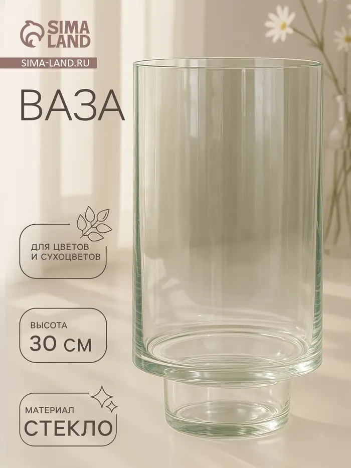 Ваза для цветов «Лола», 4.9 л, h=30 см, d=18 см, толщина стекла 3.5 мм, прозрачная