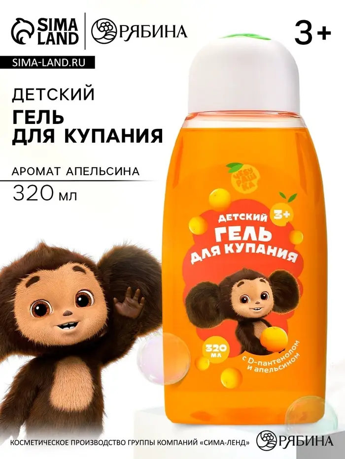 Детский гель купания, с D-пантенолом и апельсином, 320 мл, Чебурашка