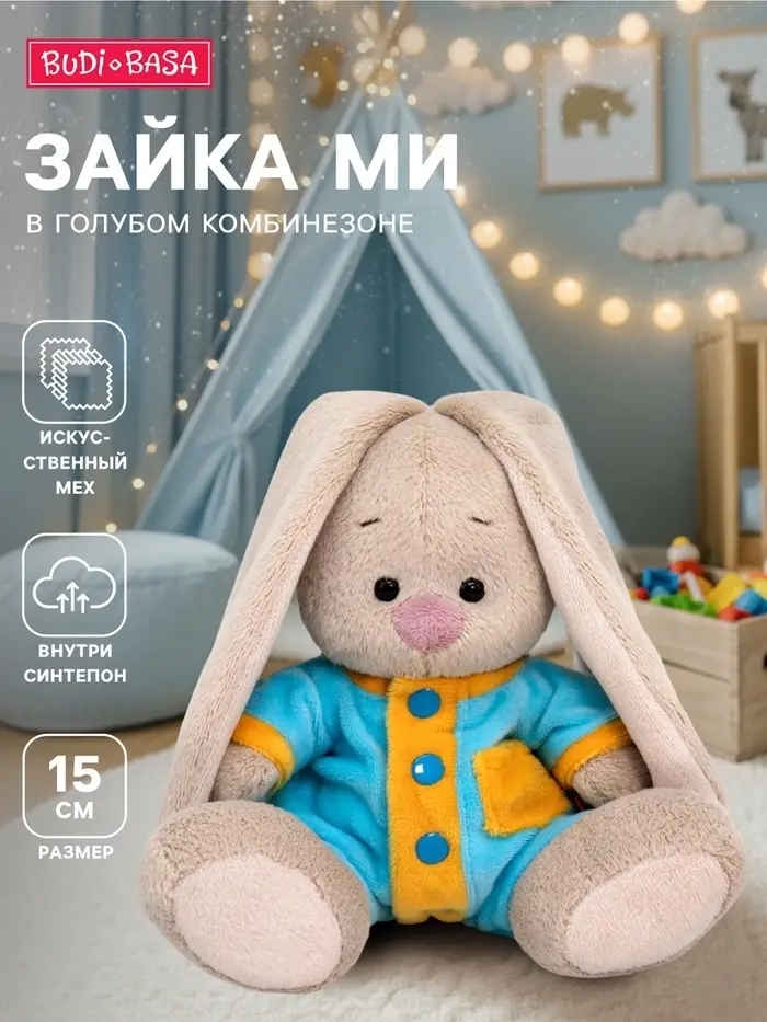Мягкая «Зайка Ми» — это очаровательный персонаж, который станет идеальным другом для вашего ребёнка. Её компактный размер и стильный голубой комбинезон, делают её универсальным выбором для игр, украшения комнаты или как стильного подарка. Мягкий искусственный мех и наполнитель из синтепона обеспечивают комфорт и безопасность.