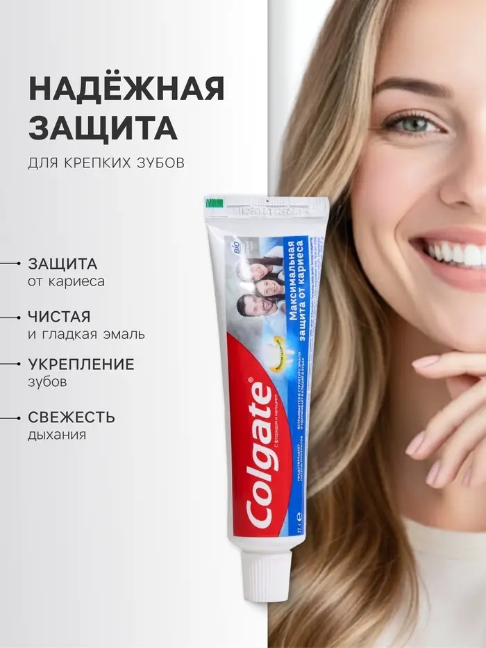 Зубная паста Colgate «Максимальная защита от кариеса» со свежей мятой — ваш надёжный защитник от кариеса и источник свежести дыхания. Эта паста создана специально для эффективной борьбы с кариесом и поддержания здоровья ваших зубов.